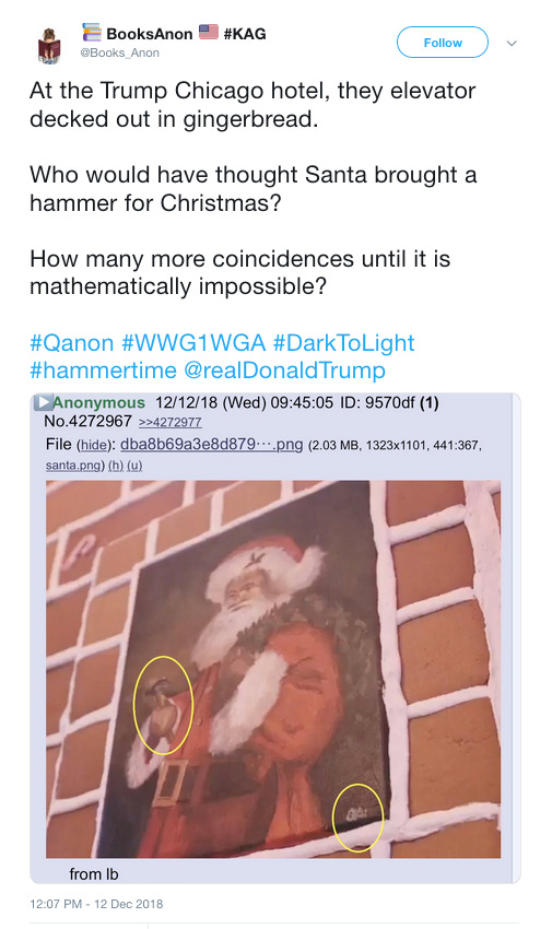 QAnon enthusiasts found all sorts of meaning in the Trump Hotel and Tower Chicago’s gingerbread elevator.