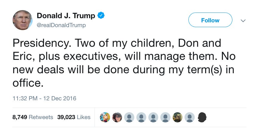 One thing that has nothing to do with Trump’s businesses (I think, tough to tell sometimes!)