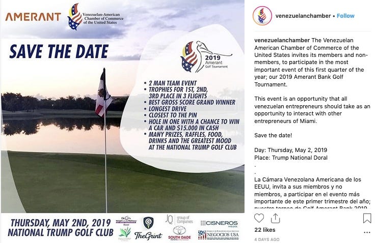 While advocating for enhanced immigration status, the Venezuelan-American Chamber of Commerce plans a golf tournament at Doral