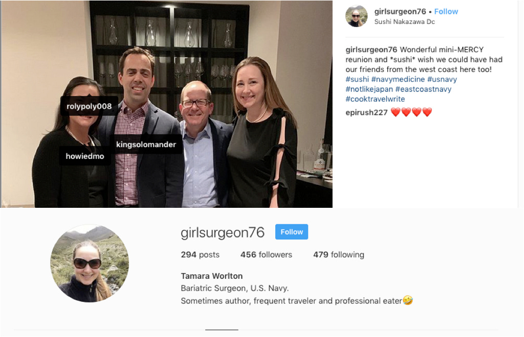 Tamara Worlton, a surgeon in the U.S. Navy, had a wonderful mini reunion at Sushi Nakazawa (located in the commander-in-chief’s hotel).