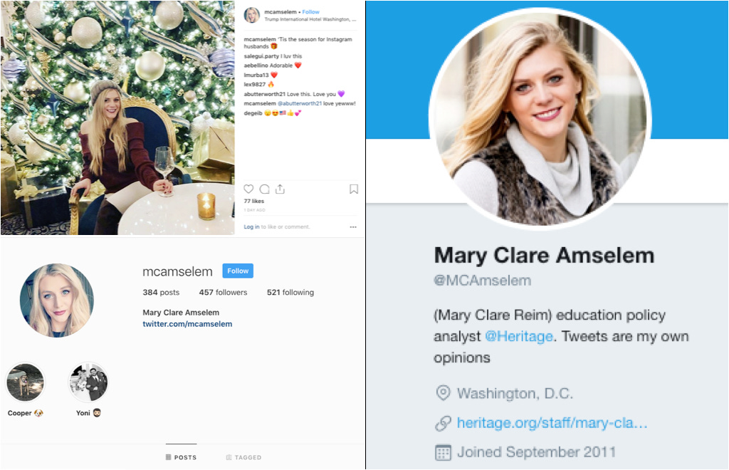 An education policy analyst at the Heritage Foundation, Mary Clare Amselem, had her husband shoot a festive portrait by the tree.