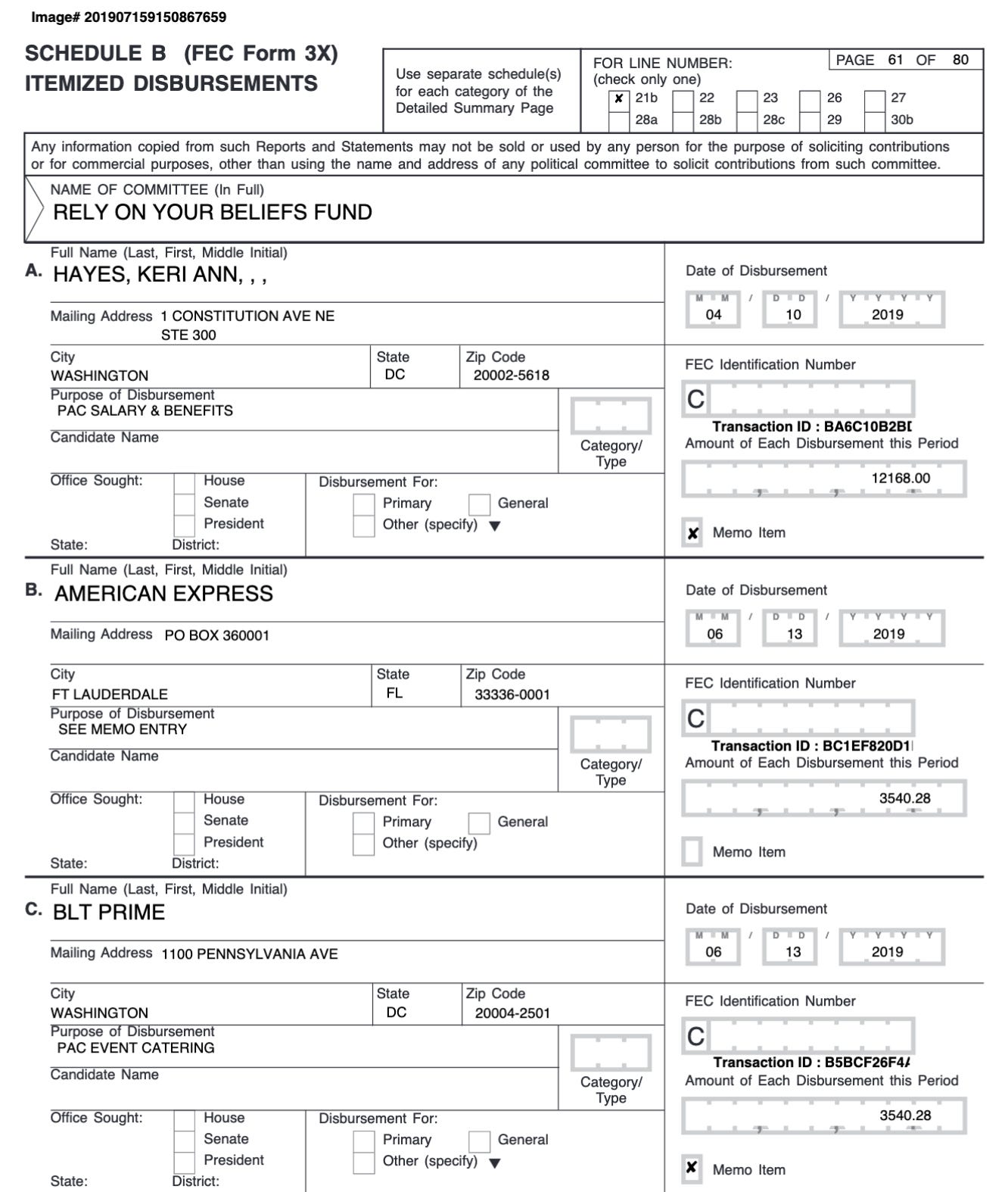 Rely on Your Beliefs Fund, associated with Sen. Roy Blunt (R–MO), spent $3,540.28 on event catering at the D.C. hotel owned by the head of the executive branch and Blunt’s party. It marked the first time Blunt’s PAC or campaign has reported spending money at the Trump Hotel D.C.