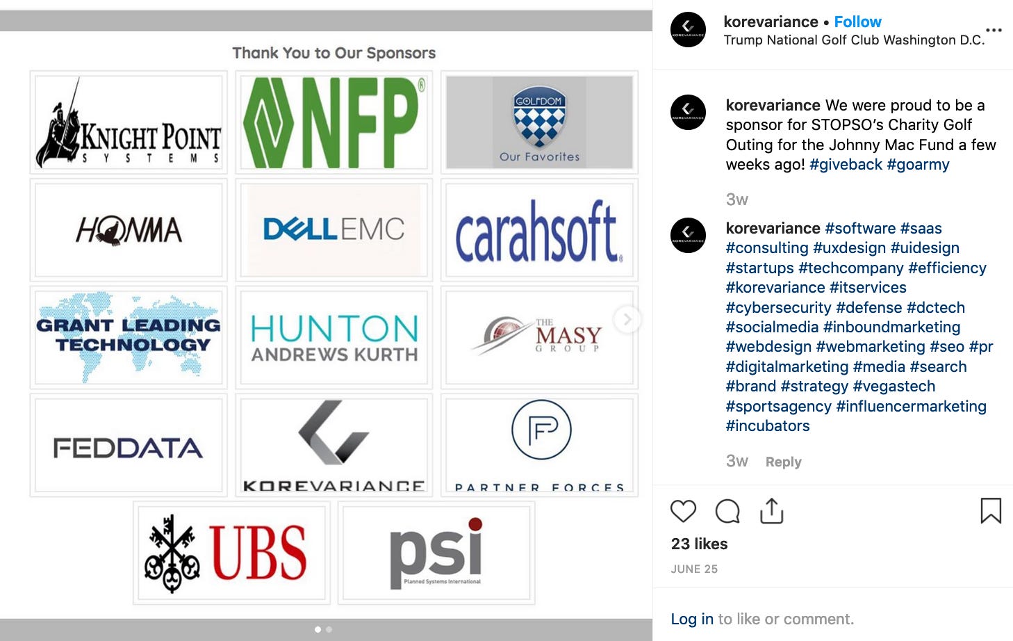 These companies—including government contractors Dell EMC, Carahsoft, and FedData—sponsored a fundraiser for veterans charity the Johnny Mac Fund at the U.S. president’s Sterling, Virginia golf course in June.