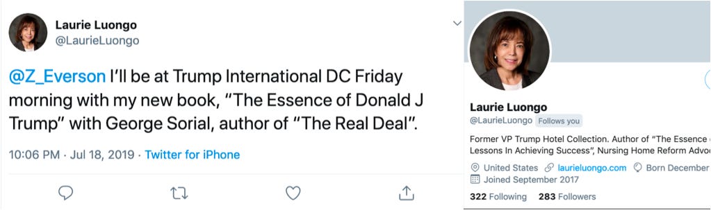 Former Trump Hotels Collection vice president Laurie Luongo signed her book at the Trump Hotel D.C. this morning with former Trump Organization executive vice president and chief compliance counsel, George Sorial.
